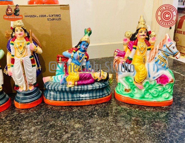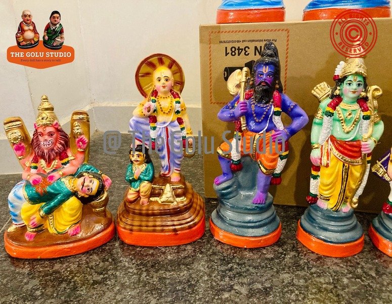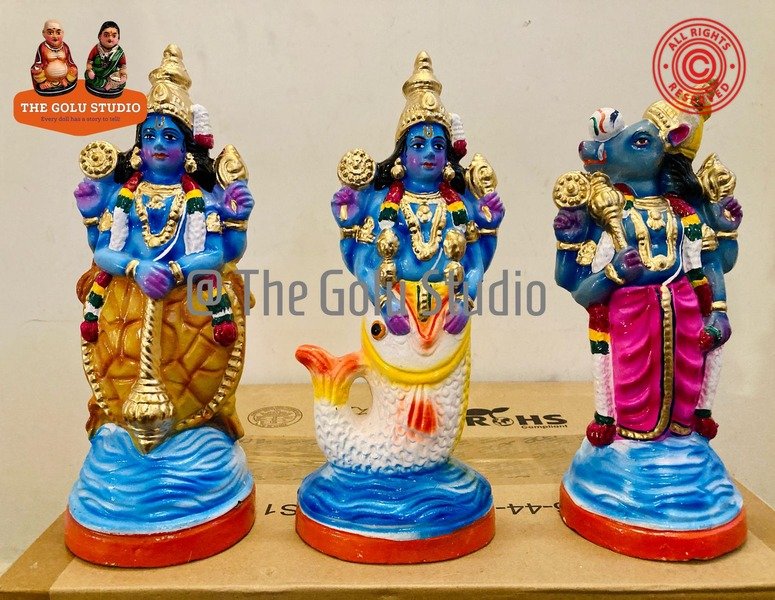 Description: Dasavatharam refers to the ten divine incarnations of Lord Vishnu, taken to protect the world and restore dharma (righteousness). Each avatar appeared at a crucial time to defeat evil and guide humanity. The ten avatars are: Matsya, Kurma, Varaha, Narasimha, Vamana, Parashurama, Rama, Balaramar Krishna, and Kalki (yet to come). These forms show Vishnu’s compassion, strength, and role in maintaining cosmic balance. Worshipping Dasavatara teaches faith, moral living, and the victory of good over evil