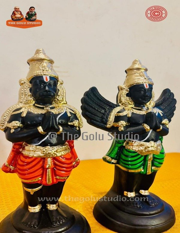 Description: Garuda, the eagle vehicle of Lord Vishnu, and Hanuman, the devoted servant of Lord Rama, both stand for great strength, speed, and devotion. Seeing them together shows the unity of two powerful devotees of the same Supreme Lord. Garuda removes snake-related fears and illnesses, while Hanuman removes fear, evil, and sorrow. Together, they give double protection, courage, and blessings for health and safety. Worshipping Garuda with Hanuman at home brings peace, drives away negativity, and reminds us to live with faith, service, and loyalty to God.