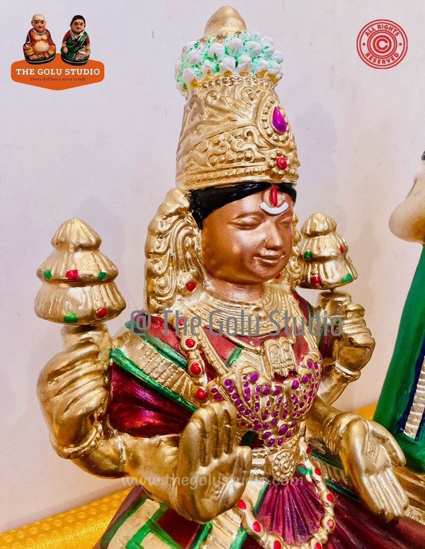 Shri Sundaravalli Semdha with Shri Sundararaja Perumal, also known as Kallazhagar Serthi, is a divine scene celebrated in Madurai. It shows Lord Kallazhagar (a form of Vishnu) joining with his consort Sundaravalli Thayar. This event represents love, devotion, and the bond between the Lord and Goddess, blessing devotees with happiness and prosperity. Families display this set in Golu to honor their union and seek divine blessings. It teaches children about faith, respect, and the importance of togetherness. Remembering this serthi inspires devotion, harmony, and the belief that God always protects and guides his devotees with love.