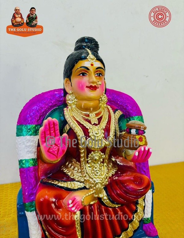 Description: Koozh Amman is revered as a powerful village guardian who protects communities from diseases, especially heat-related illnesses. Offering koozh (fermented porridge) symbolizes humility, nourishment, and devotion. Worship of Mariamman in this form brings health, timely rains, prosperity, and collective well-being, strengthening faith and unity among devotees.