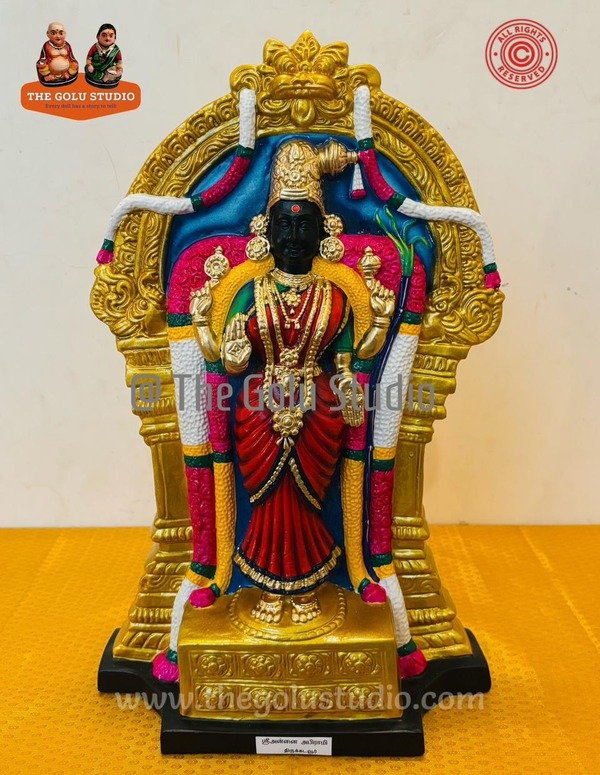 Description: Abirami Amman of Thirukadaiyur Temple symbolizes divine grace, protection, and longevity. She blessed devotee Abirami Pattar by turning a new moon into a full moon, saving him from danger. Worshipping Her removes fear, grants long life, marital harmony, and fulfills sincere prayers with compassion.