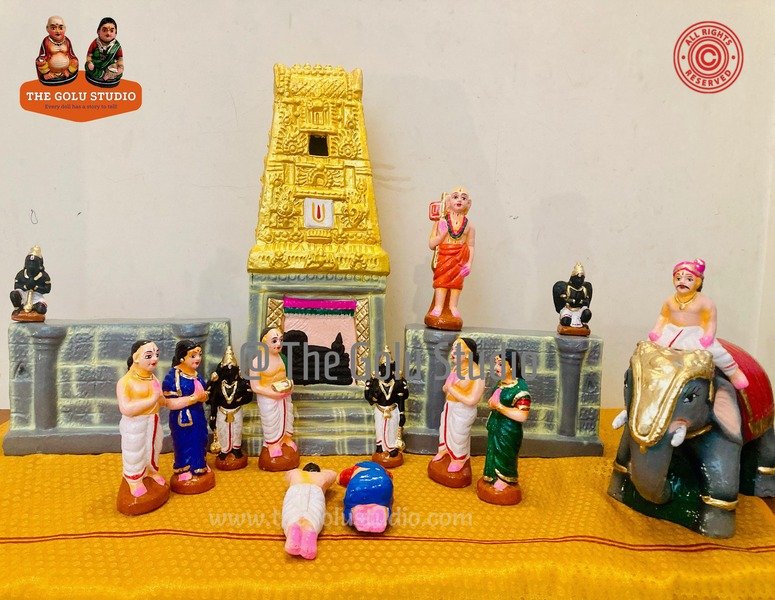 Description: Thirukoshtiyur is one among 108 divyadesam. Thirukoshtiyur is a holy village near Madurai, famous in Vaishnavism. Sri Ramanujar came here to learn the secret “Ashtakshara Mantra” from his guru, Thirukoshtiyur Nambi. After receiving it, Ramanujar climbed the temple tower and loudly shared the mantra with everyone, saying it should not be kept hidden but used to save people. Though his guru was first angry, later he blessed Ramanujar for his compassion. This event showed Ramanujar’s love for humanity and his selfless service to God.