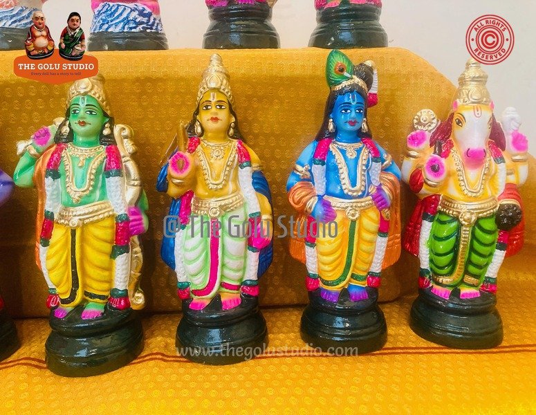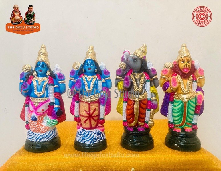 Description: Dasavatharam refers to the ten divine incarnations of Lord Vishnu, taken to protect the world and restore dharma (righteousness). Each avatar appeared at a crucial time to defeat evil and guide humanity. The ten avatars are: Matsya, Kurma, Varaha, Narasimha, Vamana, Parashurama, Rama, Balaramar Krishna, and Kalki (yet to come). These forms show Vishnu’s compassion, strength, and role in maintaining cosmic balance. Worshipping Dasavatara teaches faith, moral living, and the victory of good over evil