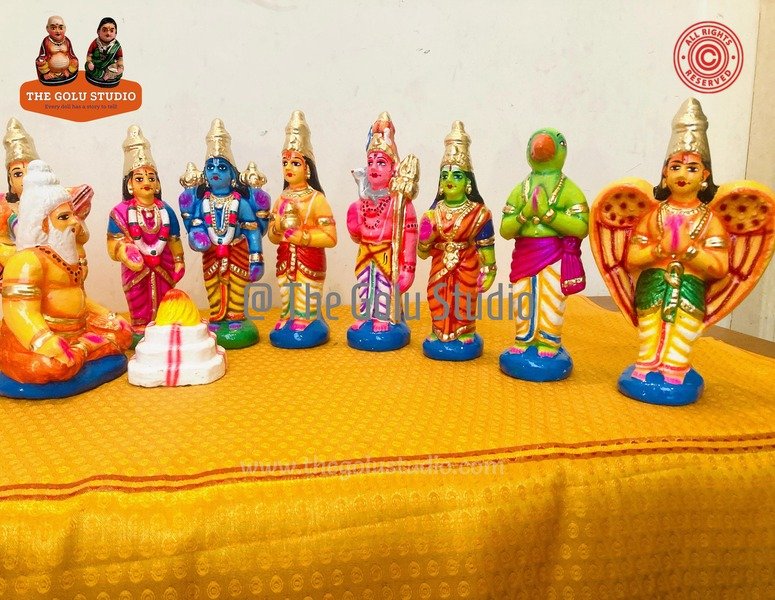 Description: Srinivasa Kalyanam is the divine wedding of Lord Srinivasa (Venkateswara) and Goddess Padmavati. It took place in Tirupati. The gods and sages, including Lord Brahma, Lord Shiva, Narada, and others, attended the ceremony. Sage Bhrigu played a key role in the events leading to the marriage. The wedding symbolizes divine love, prosperity, and the union of Lakshmi and Vishnu